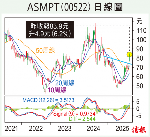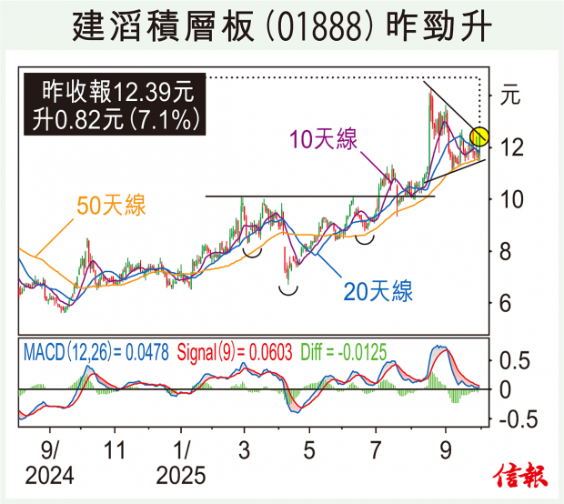 10號風球下港股先挫後揚,恒指昨曾低見26073點,於20天線(25958點)前獲支持,收報26518點,以大陽燭倒升359點。晶片股回一回氣又升,中芯(00981)飆5.7%,報76.75元,再創新高,華虹半導體(01347)升3.9%,報63.25元。 晶片板塊主要受惠於三大...全文