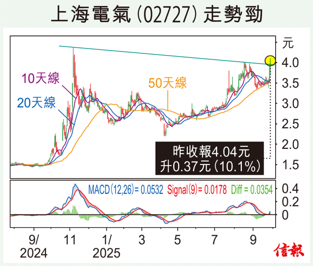 港股昨日先揚後挫,恒指早段升逾百點,收市倒跌33點報26484,大漲小回。逆市而升的股份不少,上海電氣(02727)是其中之一,大升一成報4.04元。 本欄6月中以「否極泰來」形容上海電氣,建議2.92元買入,持有至今利潤逾38%。上海電氣是國內三大電力設備股之一,由於旗下公司早...全文