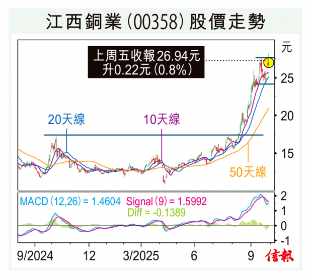 期指結算日港股急漲,恒指收報26622點,飆升494點,10天線(26469點)失而復得,短期有望上試前高位27058點。 金、銅股繼續升,有貨繼續持有,冇貨候調整吸納。鋼鐵股因為反內捲彈升,鞍鋼(00347)上揚6.25%報2.21元,2.57元目標7月下旬時差點抵達,今次升浪...全文