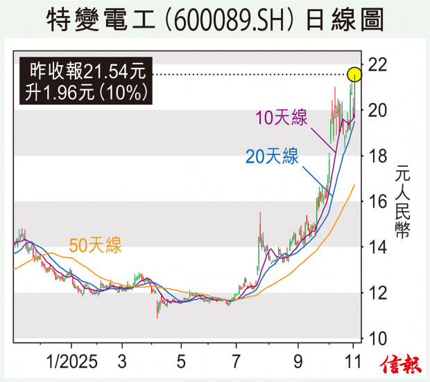 中美貿易戰暫休後,A股進一步攀升,滬深指數昨天分別漲0.55%及0.19%。與貿易戰相關的稀土、出口及半導體概念則持續有回吐。而有望受惠於AI時代的電力概念表現突出,電網設備及光伏設備板塊均受到主力資金青睞。 滬指昨天收報3976點,上升21點。兩市總成交金額為2.11萬億元(人...全文