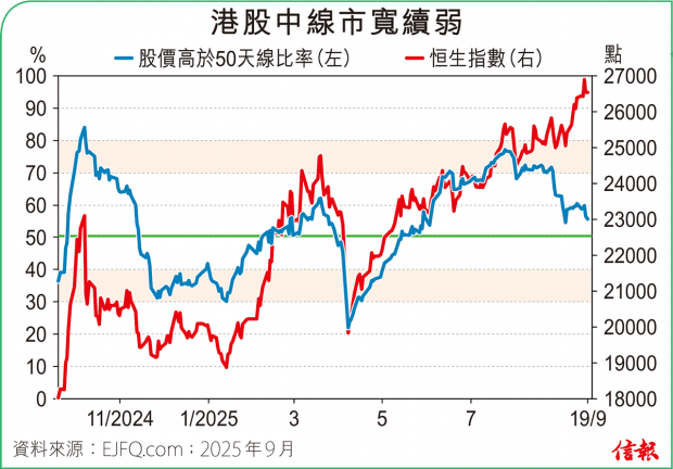 ❶大市表現 恒指高開後倒跌,曾瀉219點,收報25343點,挫153點(0.6%)。主板成交金額降至2676.5億元,全日沽空金額392.5億元,沽空比率升至14.66%。整體2600多隻港股升跌比例43:57。3天線高於18天線、股價高於50天...全文